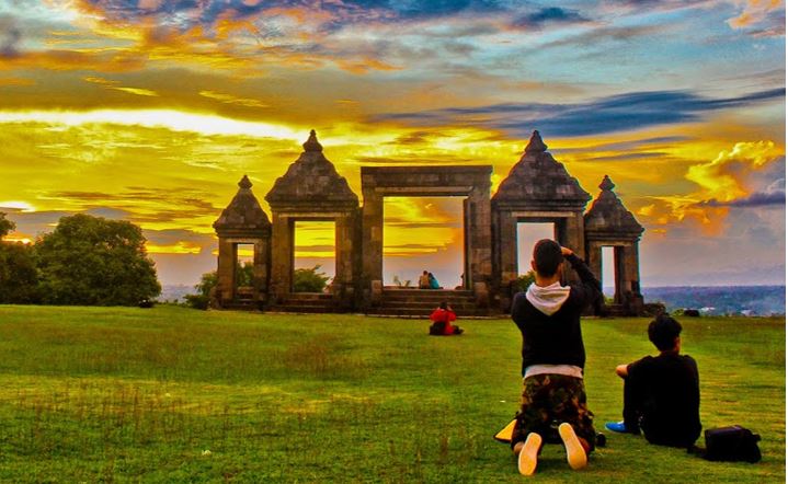 SelengkapnyaKraton Ratu Boko terletak di Bukit Boko, 19 kilometer ke arah timur dari Kota Yogyakarta (menuju ke